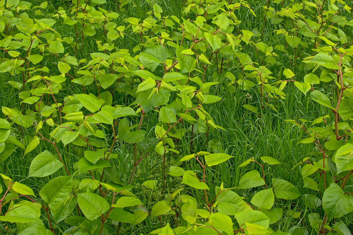 Er ontstaat begroeiing die alleen nog maar uit duizendknoopplanten bestaan.